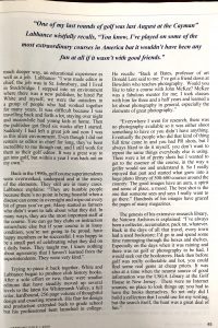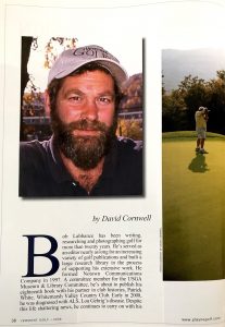 Synopsis: This article talks about Bob Labbance and his influence on golf. It talks about him as a person as well as his work both playing and researching golf.