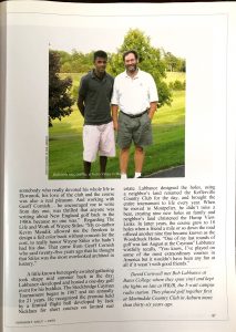 “My first memories of golf were in the third grade, playing in a friend’s backyard among the apple trees. I caddied at the Country Club of Fairfield (CT) from about age 11 to 13, 1963-1965. The highlight of that wa caddying fo rJulius Boros in 1963, and of course getting to play on Mondays when t was closed, I didn’t know whit about course architecture then, so little did I realize I was on a great old Seth Raynor course. I enjoyed playing golf from the get go. My high school sweetheart’s family belonged to the Patterson Club so I got to play there too. Played a bit in high school, but did not play on the golf team because it conflicted with baseball and baseball was my number on . Played a lot in the summers, friends worked at various clubs in the area so we could play around.”