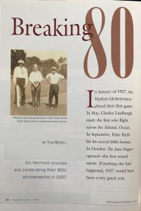 And in the green hills of Vermont, six golf courses came into existence: Basin Harbor Club, Gleneagles at the Equinox, Northfield Country Club, Williston Golf Club, Bradford Golf Club, and the Ralph Myhre Golf Course (sort of).
